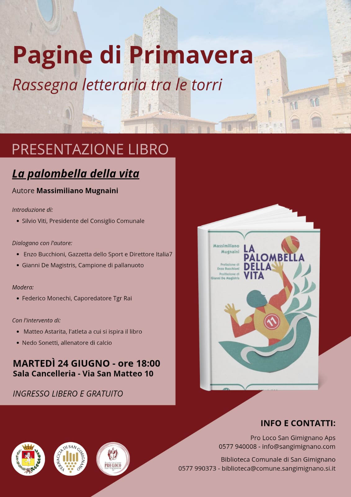 Martedì 24 giugno, alle ore 18, nuovo appuntamento con la rassegna "Pagine di Primavera. Rassegna letteraria tra le torri" nella Sala Cancelleria.