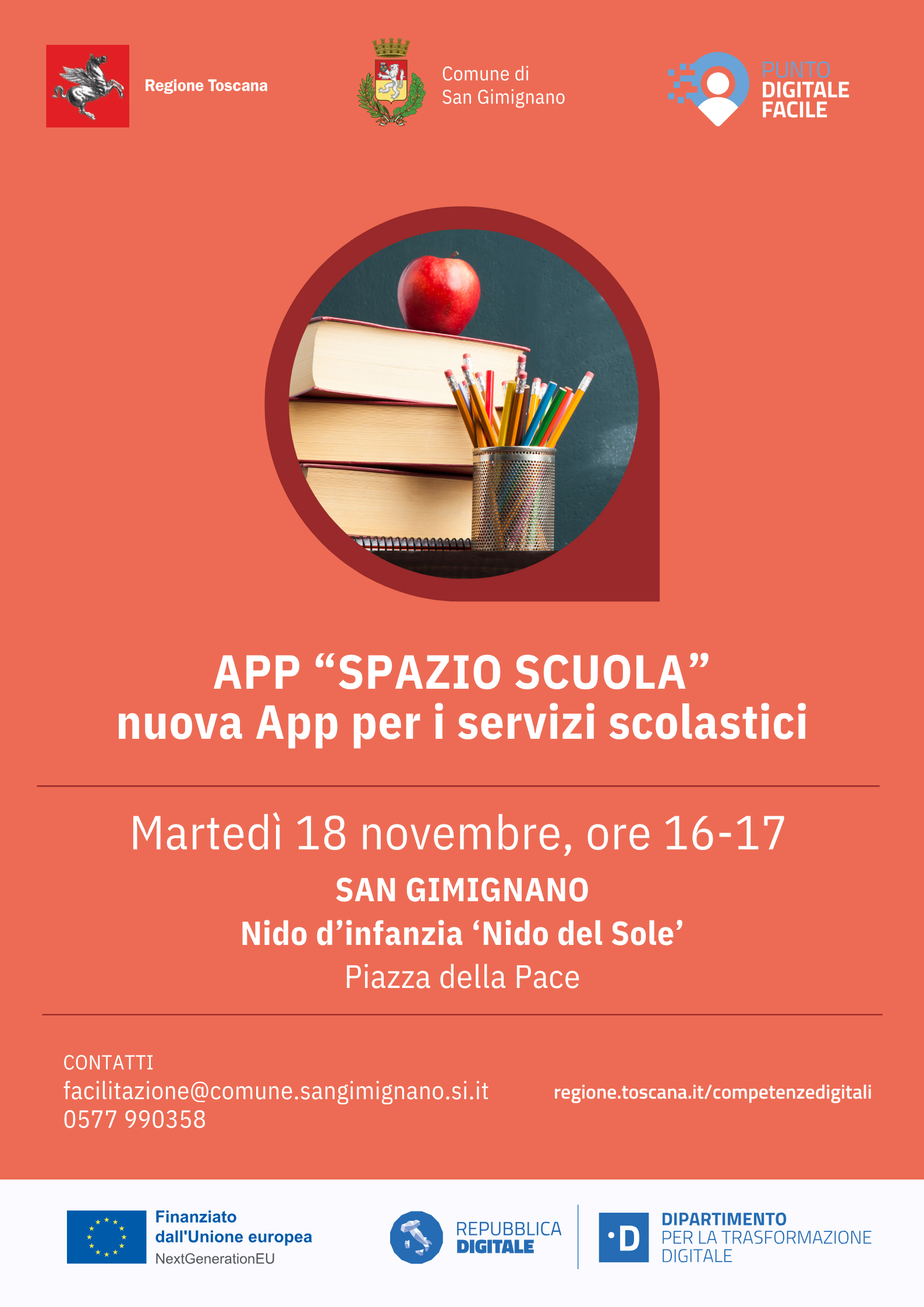Durante l'incontro sarà presentata la nuova App Spazio Scuola, uno strumento pensato per semplificare la gestione dei servizi scolastici comunali e favorire una comunicazione più immediata tra famiglie e Comune. La presentazione sarà curata da Ylenia Cortigiani, dell’URP, Ufficio Relazioni con il Pubblico, e dal personale dei servizi informatici e informativi del Comune.