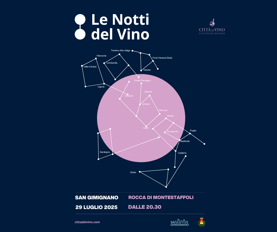 Le Notti del Vino. Obiettivo dell’iniziativa è valorizzare la Vernaccia di San Gimignano come espressione autentica del territorio, raccontandone la storia, la qualità e il legame con il paesaggio e la cultura locale. Ogni serata si apre con una degustazione guidata, pensata per far conoscere al pubblico le diverse caratteristiche del vino e il lavoro dei produttori locali.