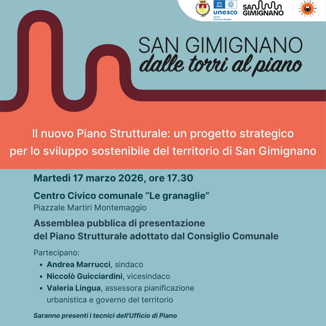 L'iniziativa porta avanti il percorso di ascolto e condivisione che ha accompagnato la redazione del nuovo Piano Strutturale negli ultimi due anni coinvolgendo cittadini, associazioni, categorie economiche e professionisti e sarà un'occasione importante per approfondire contenuti e obiettivi di questo strumento urbanistico strategico che guiderà le scelte di sviluppo e di governo del territorio nei prossimi anni, nel rispetto della legge regionale 65/2014 e delle peculiarità sangimignanesi.